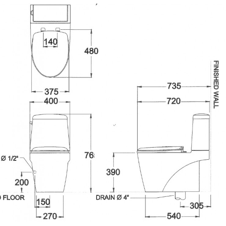 Bản vẽ kỹ thuật bàn cầu Cotto C13527: