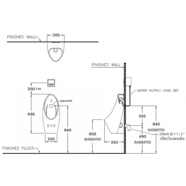 Bản vẽ kỹ thuật Tiểu Nam Treo Tường COTTO C30207BI: