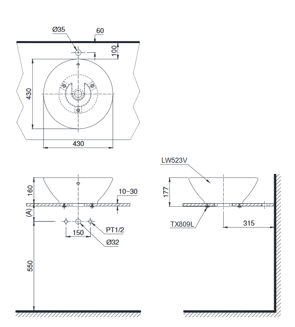 Bản vẽ chậu rửa lavabo TOTO LT523R#XW: