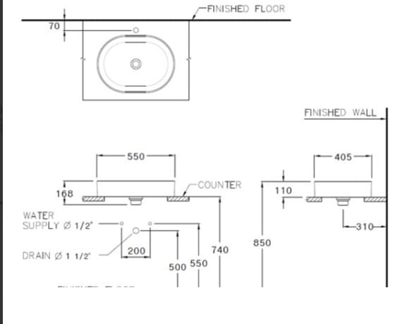 Bản vẽ kỹ thuật chậu lavabo COTTO C001027 đặt bàn: