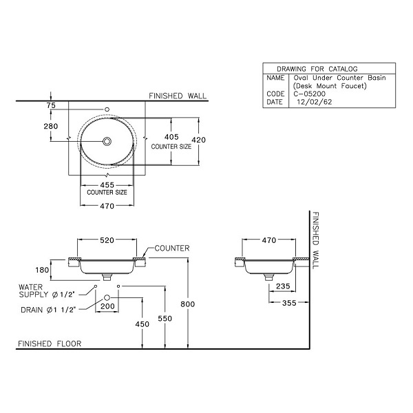 Bản vẽ kỹ thuật Lavabo Đặt Bàn Oval COTTO C05200: