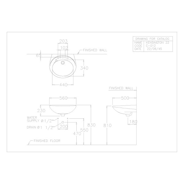 Bản vẽ kỹ thuật Lavabo treo tường COTTO C012: