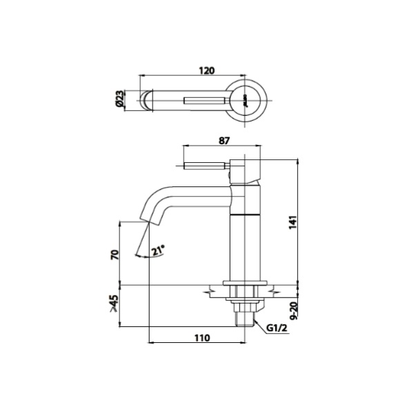Bản vẽ kỹ thuật Vòi lavabo lạnh COTTO CT1198A1N: