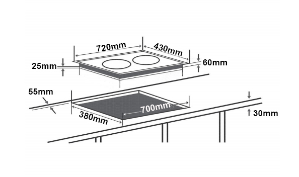 Kích thước khoét lỗ: 700x380mm